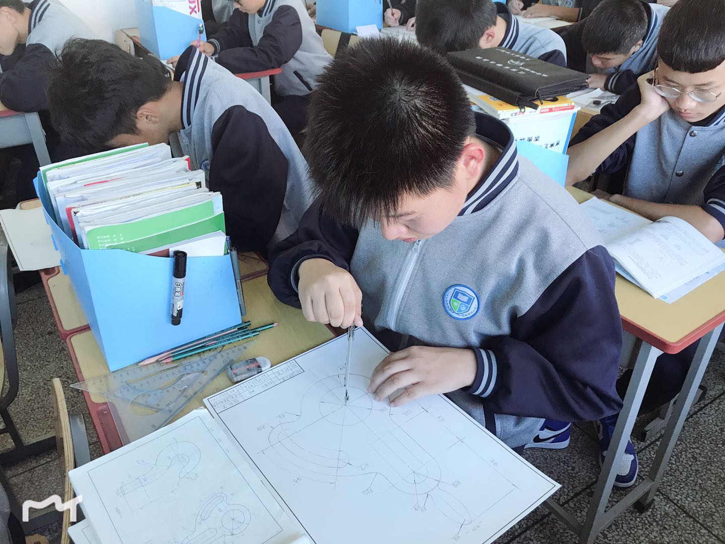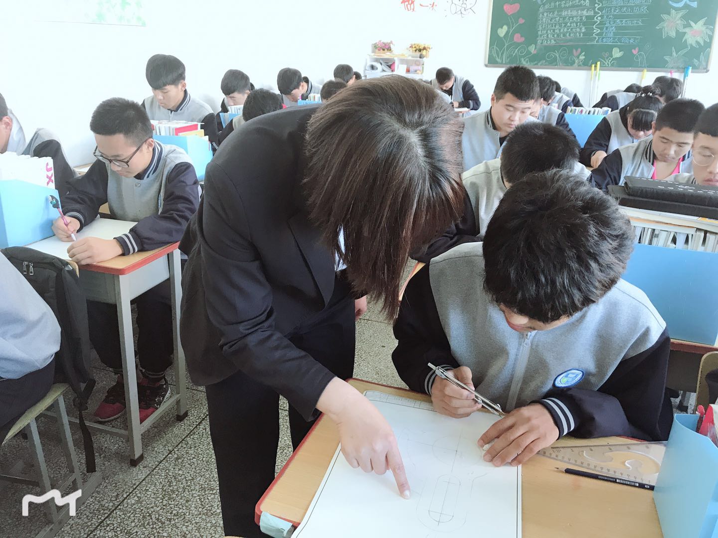 孫妮娜老師在機械制圖課上手把手指導(dǎo)學(xué)生畫圖